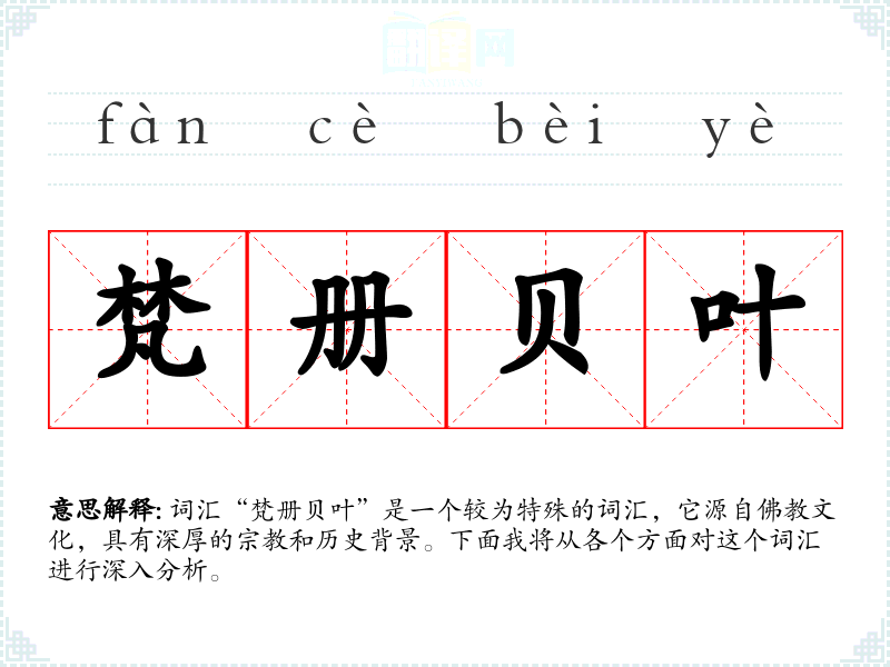 词汇“梵册贝叶”是一个较为特殊的词汇,它源自文化,具有深厚的和历史背景。下面我将从各个方面对这个词汇进行深入分析。