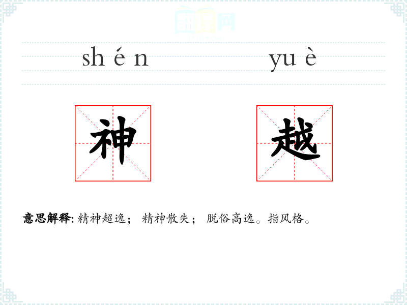 精神超逸; 精神散失; 脱俗高逸。指风格。