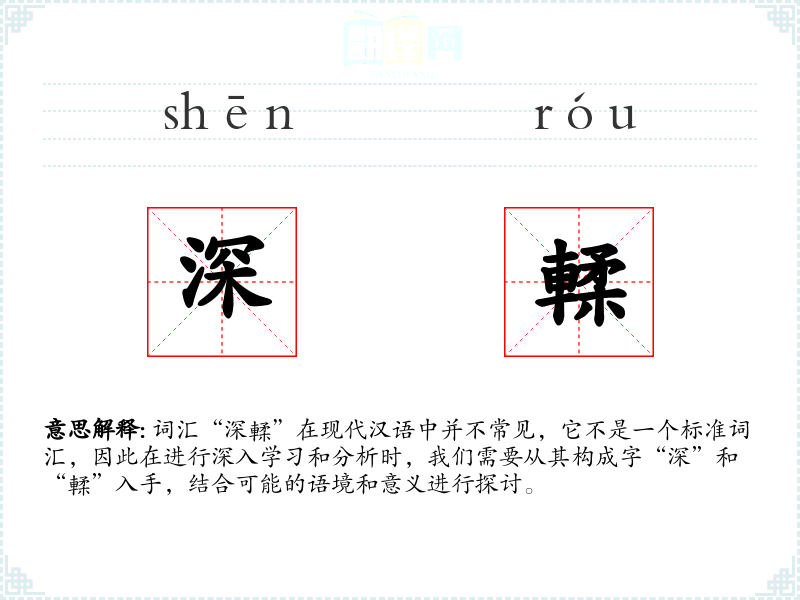 词汇“深輮”在现代汉语中并不常见,它不是一个标准词汇,因此在进行深入学习和分析时,我们需要从其构成字“深”和“輮”入手,结合可能的语境和意义进行探讨。