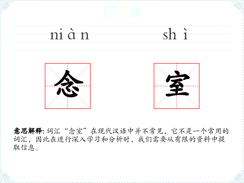 词汇“念室”在现代汉语中并不常见,它不是一个常用的词汇,因此在进行深入学*和分析时,我们需要从有限的资料中提取信息。