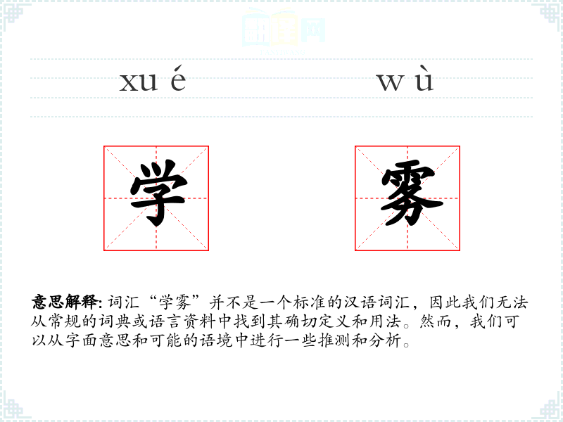 词汇“学雾”并不是一个标准的汉语词汇,因此我们无法从常规的词典或语言资料中找到其确切定义和用法。然而,我们可以从字面意思和可能的语境中进行一些推测和分析。