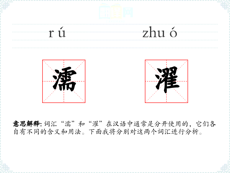 词汇“濡”和“濯”在汉语中通常是分开使用的,它们各自有不同的含义和用法。下面我将分别对这两个词汇进行分析。