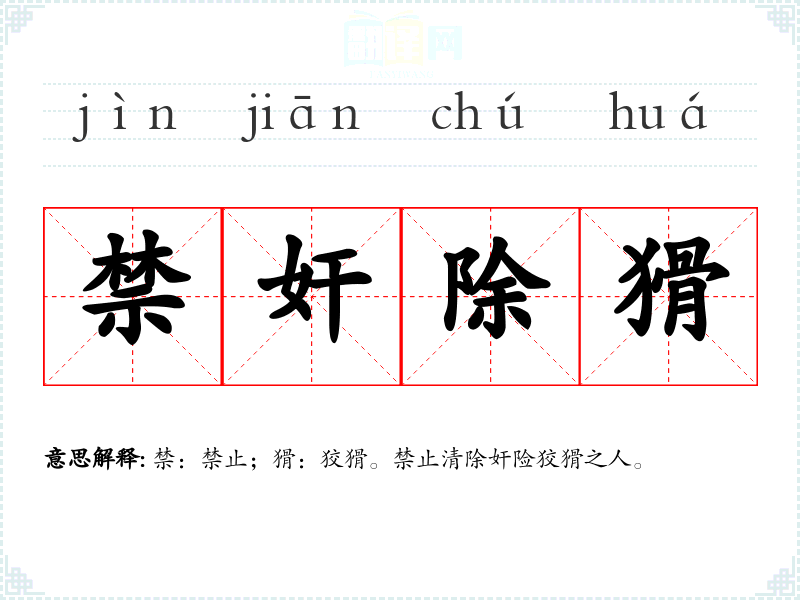 禁:禁止;猾:狡猾。禁止清除奸险狡猾之人。