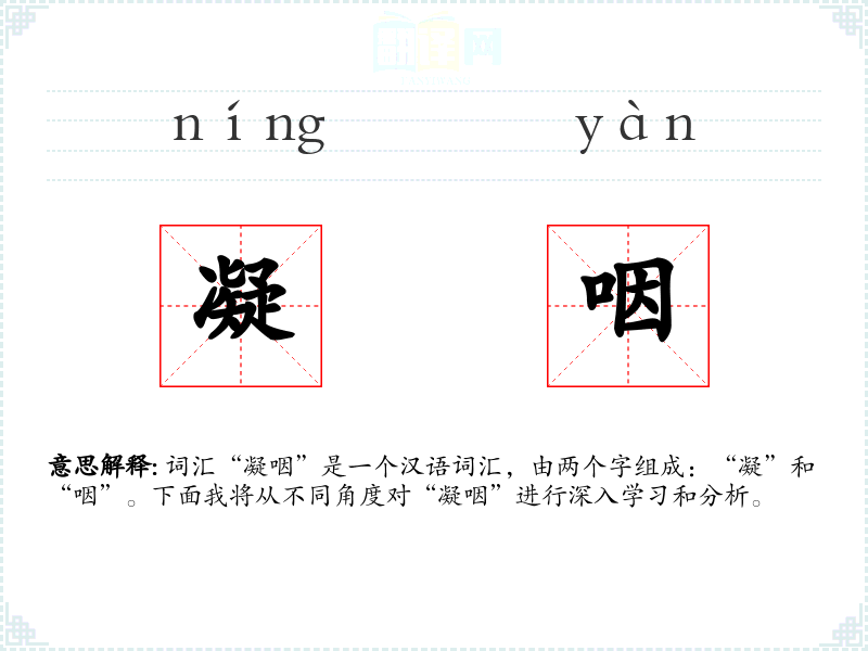 “凝”字古汉语中意为凝结、凝聚,“咽”字意为咽喉、吞咽。两个字组合在一起,形成了描述情感导致的生理反应的词汇。