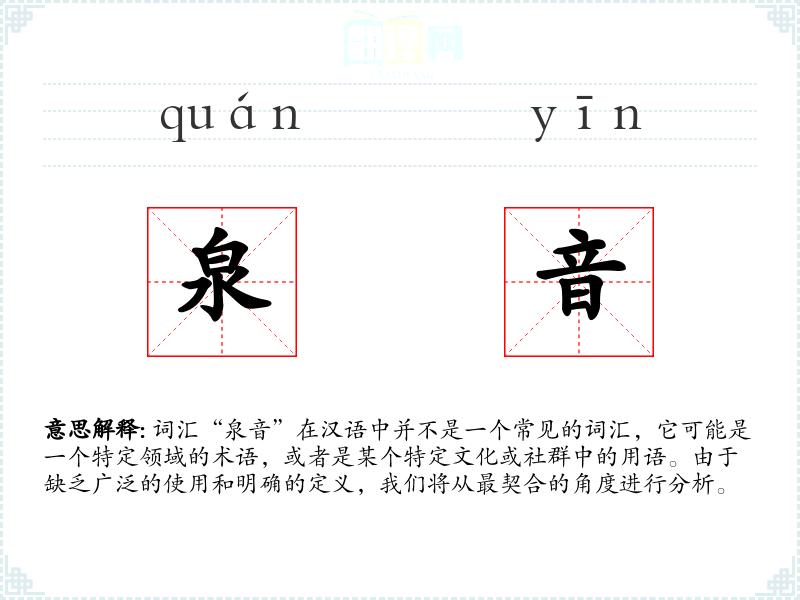 词汇“泉音”在汉语中并不是一个常见的词汇,它可能是一个特定领域的术语,或者是某个特定文化或社群中的用语。由于缺乏广泛的使用和明确的定义,我们将从最契合的角度进行分析。
