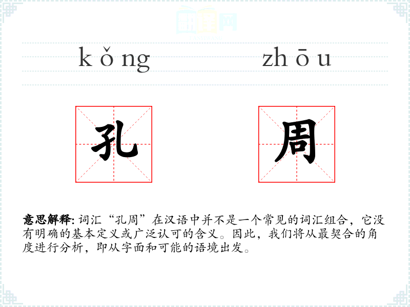 词汇“孔周”在汉语中并不是一个常见的词汇组合,它没有明确的基本定义或广泛认可的含义。因此,我们将从最契合的角度进行分析,即从字面和可能的语境出发。