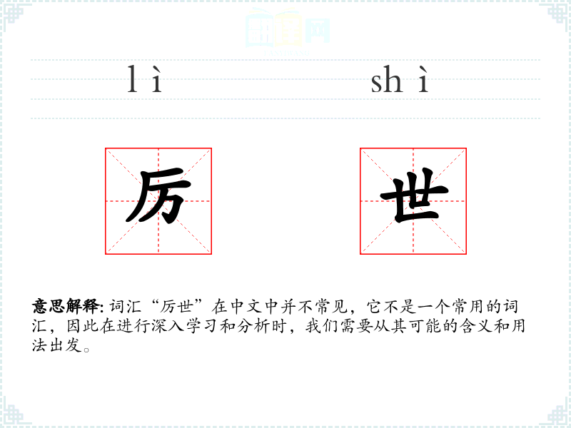 由于“厉世”不是一个常用词汇,其词源和历史演变的信息可能较少。它可能是由“厉”和“世”两个字组合而成,其中“厉”表示严厉、严格,“世”表示世界、时代。