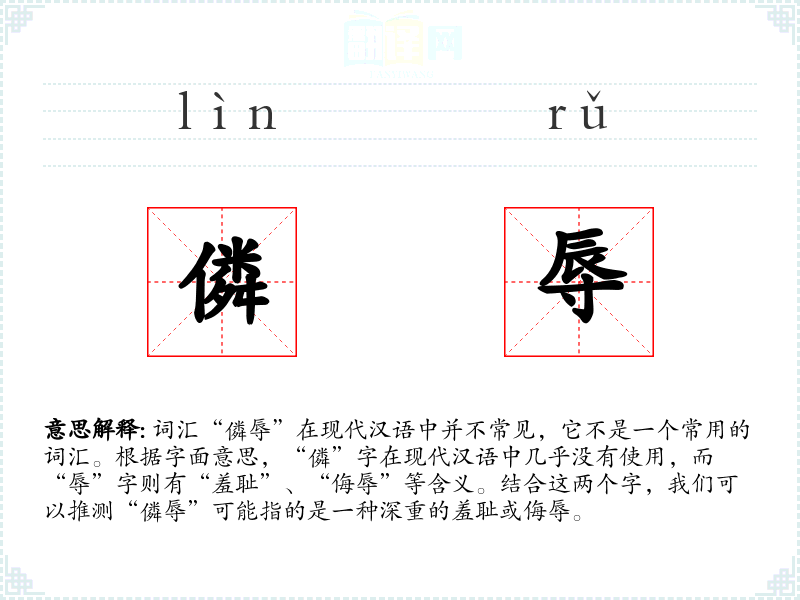 - 字面意思:结合“僯”和“辱”,可能指的是一种强烈的羞耻感或受到的严重侮辱。