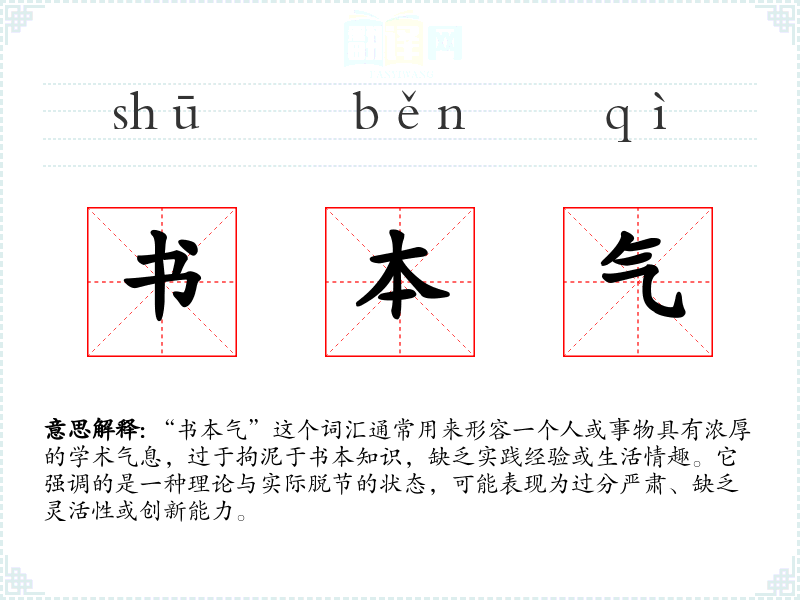“书本气”这个词汇通常用来形容一个人或事物具有浓厚的学术气息,过于拘泥于书本知识,缺乏实践经验或生活情趣。它强调的是一种理论与实际脱节的状态,可能表现为过分严肃、缺乏灵活性或创新能力。