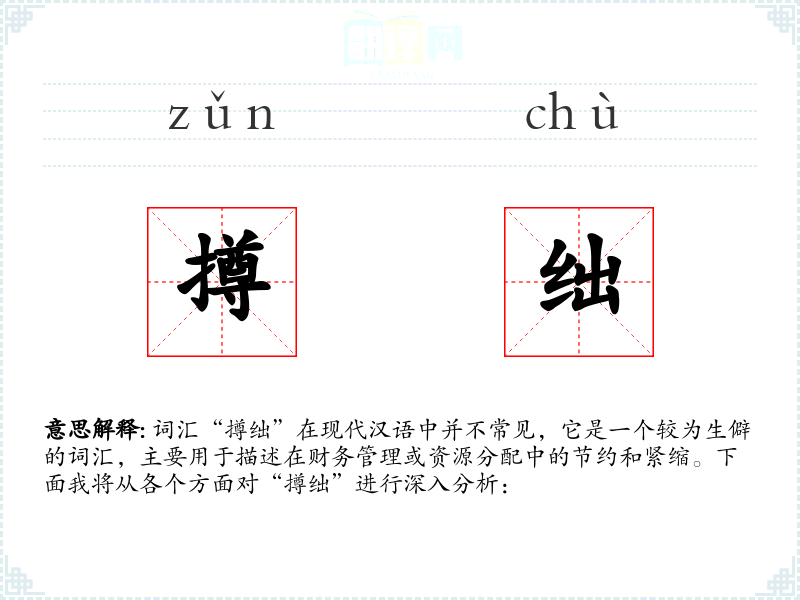 词汇“撙绌”在现代汉语中并不常见,它是一个较为生僻的词汇,主要用于描述在财务管理或资源分配中的节约和紧缩。下面我将从各个方面对“撙绌”进行深入分析:
