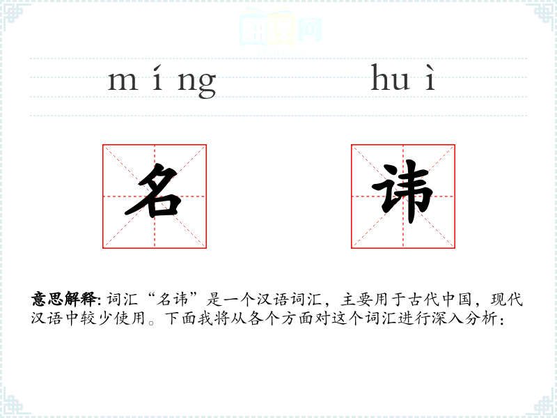 “名讳”的字面意思是名字和避讳。在古代,“名”指的是一个人的正式名字,而“讳”则是指对某些特定人物的名字的避讳,以示尊敬。通常,对、长辈或已故祖先的名字要避讳,不直接称呼或书写。
