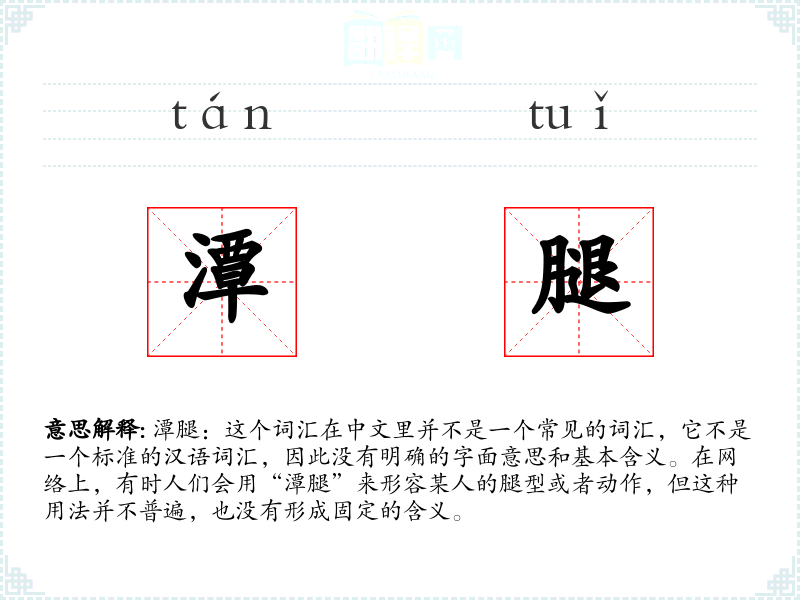由于“潭腿”不是一个标准词汇,它不会带来特定的视觉和听觉联想。