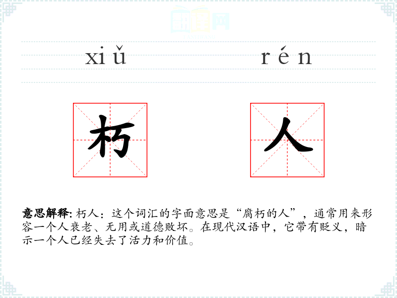 朽人:这个词汇的字面意思是“腐朽的人”,通常用来形容一个人衰老、无用或道德败坏。在现代汉语中,它带有贬义,暗示一个人已经失去了活力和价值。