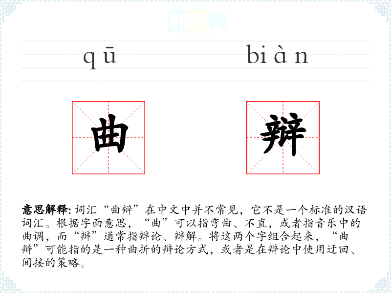 “曲辩”可能指的是在辩论或争论中采用非直接、曲折的方式来表达观点或辩护。这种方式可能涉及使用比喻、暗示或其他非直接的语言技巧。
