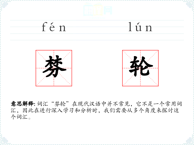 词汇“棼轮”在现代汉语中并不常见,它不是一个常用词汇,因此在进行深入学*和分析时,我们需要从多个角度来探讨这个词汇。