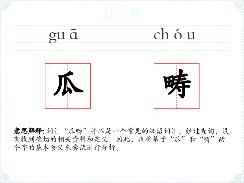 通过对“瓜畴”的分析,我们可以看到,即使是一个不常见的词汇,也可以通过其组成部分的基本含义来进行理解和推测。在语言学*和表达中,对词汇的深入理解和灵活运用是非常重要的。由于“瓜畴”不是一个标准词汇,以上的分析和假设仅供参考。