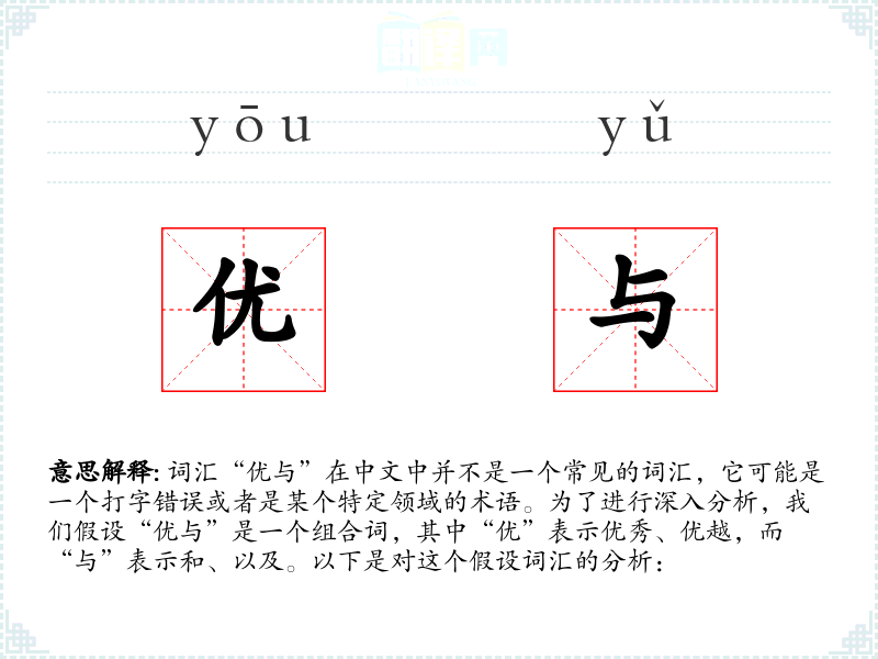 - 由于“优与”不是一个标准词汇,其在不同语言或文化中的对应词汇无从比较。