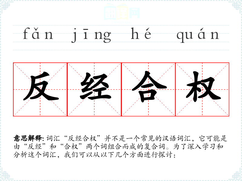 词汇“反经合权”并不是一个常见的汉语词汇,它可能是由“反经”和“合权”两个词组合而成的复合词。为了深入学*和分析这个词汇,我们可以从以下几个方面进行探讨: