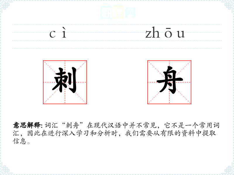 词汇“刺舟”在现代汉语中并不常见,它不是一个常用词汇,因此在进行深入学习和分析时,我们需要从有限的资料中提取信息。