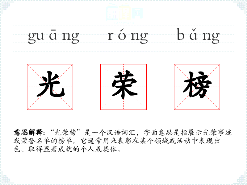 光荣榜的分字解释