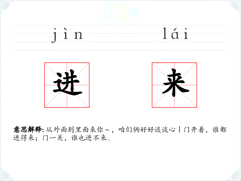 从外面到里面来你~,咱们俩好好谈谈心ㄧ门开着,谁都进得来;门一关,谁也进不来。