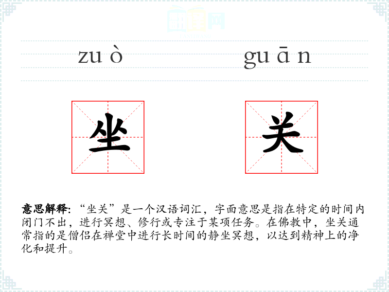 "坐关"的意思解释、坐关是什么意思由翻译网汉语词典查词提供。