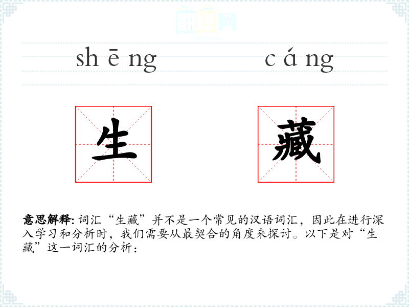 词汇“生藏”并不是一个常见的汉语词汇,因此在进行深入学习和分析时,我们需要从最契合的角度来探讨。以下是对“生藏”这一词汇的分析: