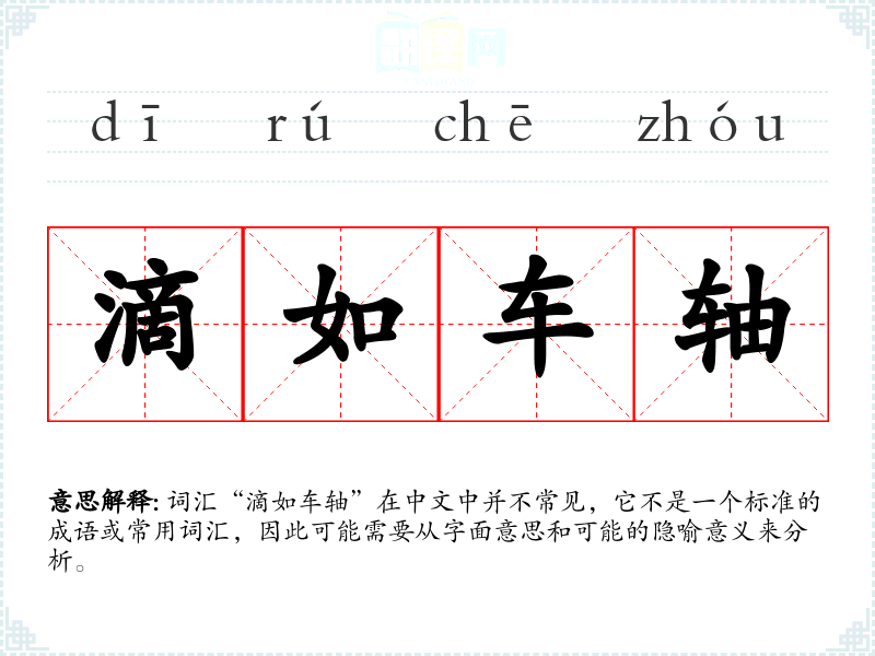 词汇“滴如车轴”在中文中并不常见,它不是一个标准的成语或常用词汇,因此可能需要从字面意思和可能的隐喻意义来分析。