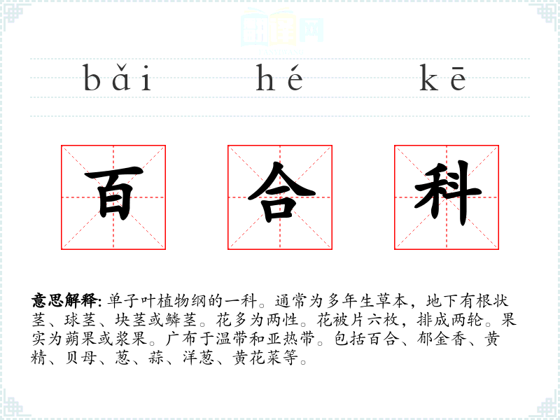 百合科的分字解释