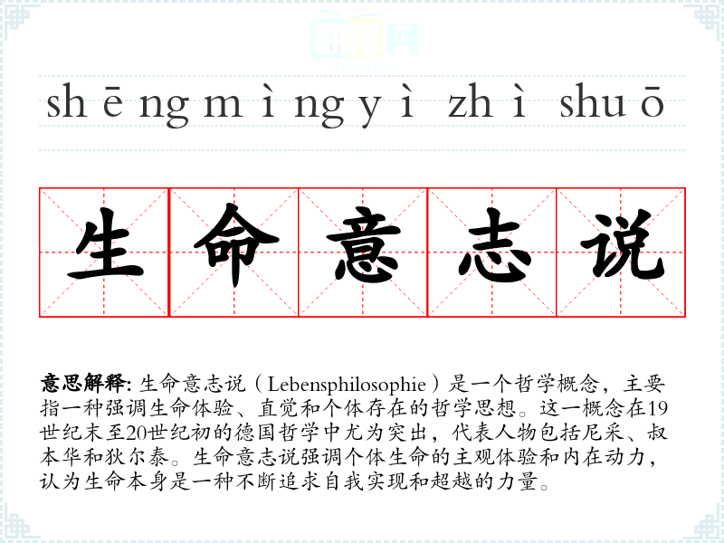 "生命意志说"的意思解释、生命意志说是什么意思由翻译网汉语词典查词提供。