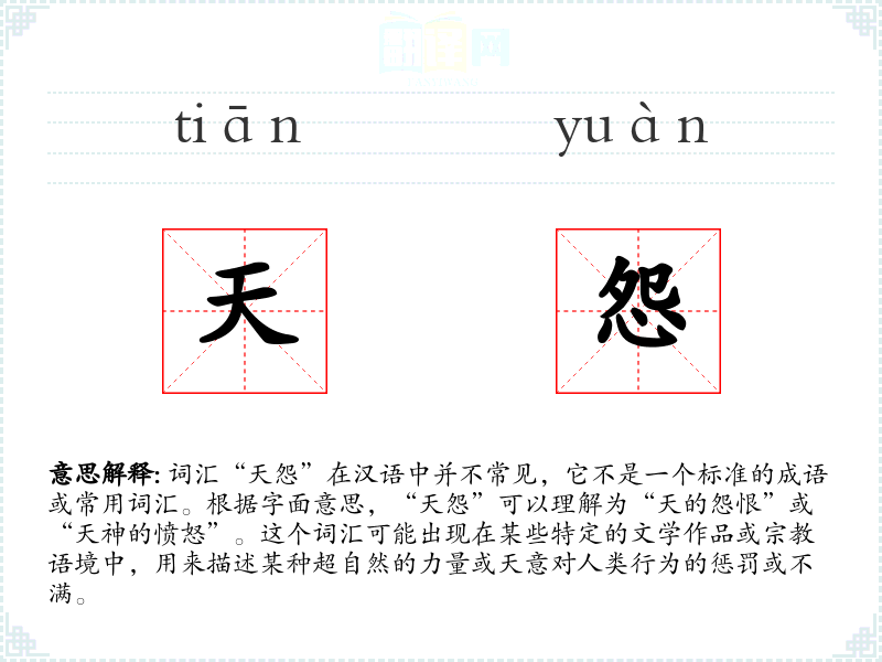 由于“天怨”不是一个常用词汇,个人在生活中可能很少有机会直接使用或遇到这个词汇。