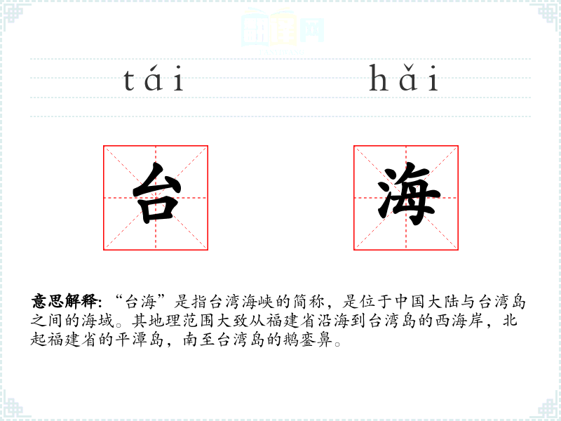 在中华文化中,“台海”不仅是地理概念,也承载着深厚的历史和文化意义。它象征着两岸的分离与联系,是两岸人民共同的历史记忆和文化纽带。