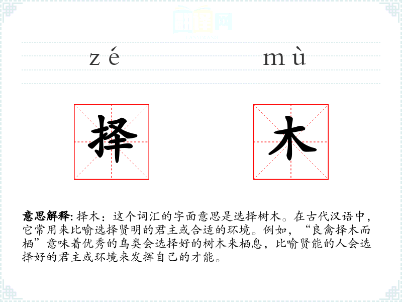 “择木”这个词汇不仅是一个简单的选择行为,更是一种智慧和策略的体现。在语言学*和表达中,理解这样的词汇可以帮助我们更深刻地理解文化和历史背景,同时也能够在现代语境中灵活运用。