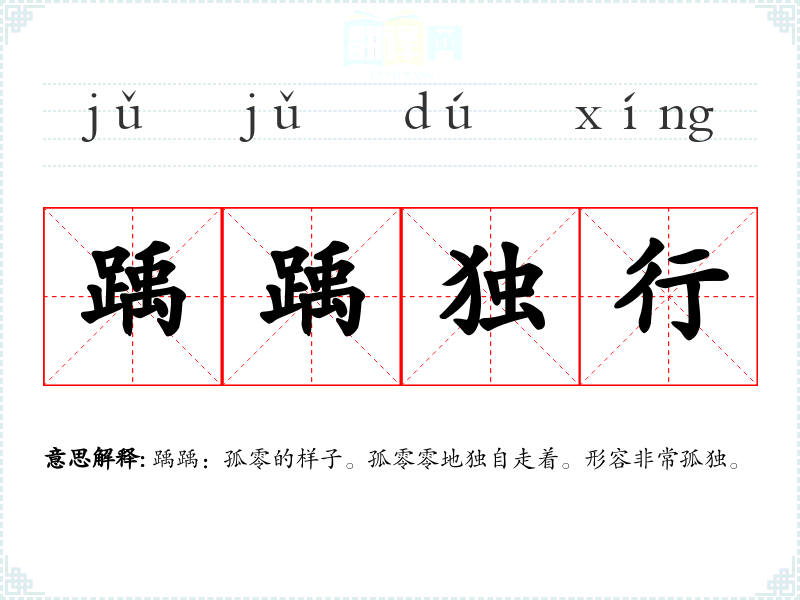 踽踽:孤零的样子。孤零零地独自走着。形容非常孤独。