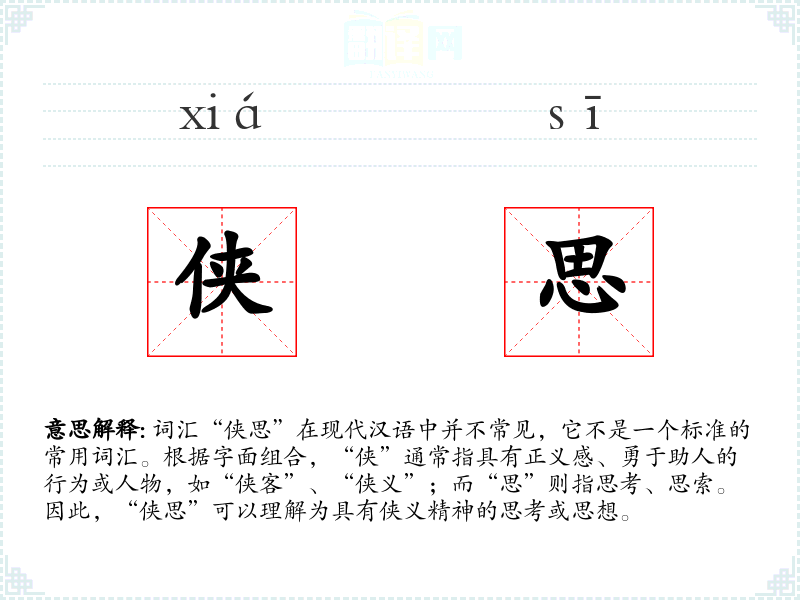 "侠思"的意思解释、侠思是什么意思由翻译网汉语词典查词提供。