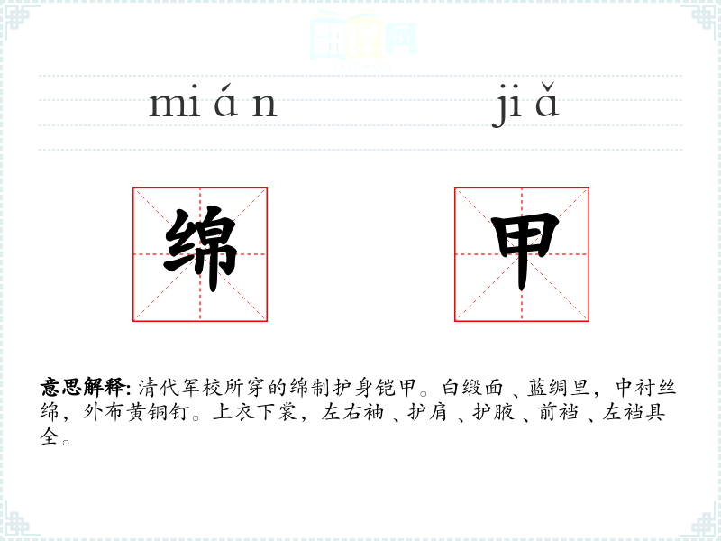 绵甲的分字解释