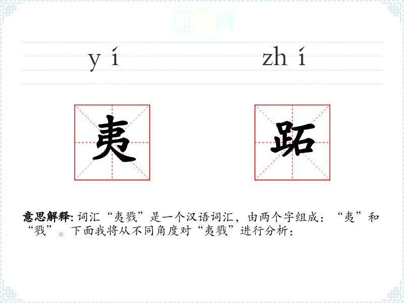 - 字面意思:“夷”字在古代汉语中有多重含义,包括平坦、消除、外族等意思;“戮”字则指杀戮、处死。