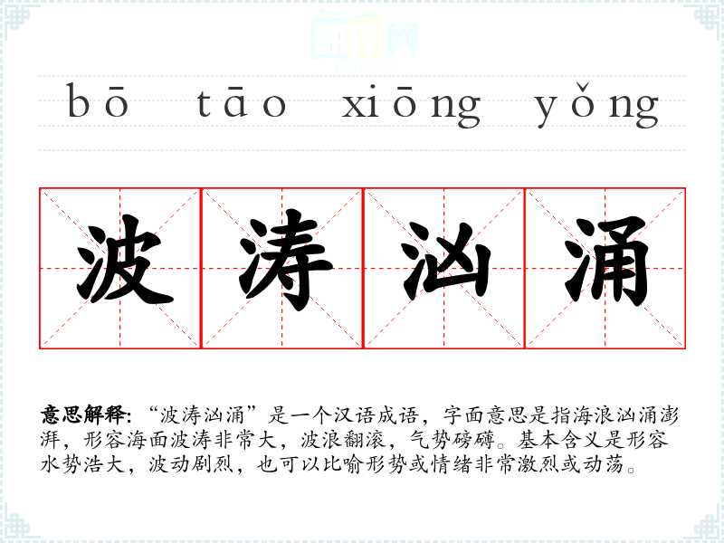 在**文化中,海洋常常被赋予壮阔、神秘的象征意义,因此“波涛汹涌”也常被用来形容宏大的场面或激烈的情绪。