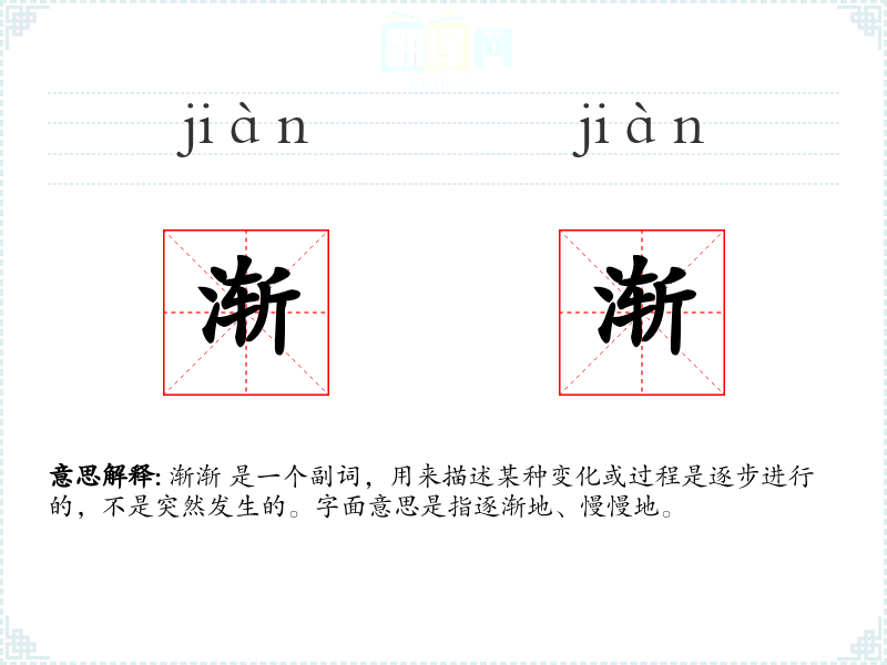 "渐渐"的意思解释、渐渐是什么意思由翻译网汉语词典查词提供。