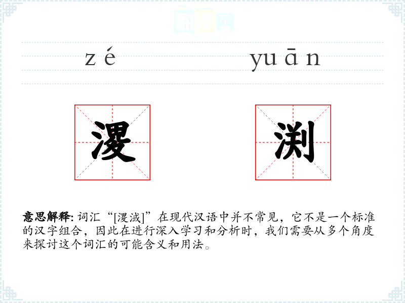 对于“溭淢”这个词汇,由于其不是一个标准的汉字组合,我们在学习和分析时需要更多的创造性和想象力。它可能是一个古字或方言字,承载着特定的文化和历史意义。在语言学习和表达中,了解这样的词汇可以增加我们对语言多样性和历史深度的认识。