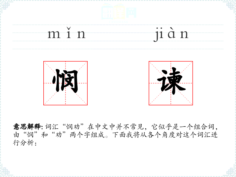 词汇“悯劝”在中文中并不常见,它似乎是一个组合词,由“悯”和“劝”两个字组成。下面我将从各个角度对这个词汇进行分析: