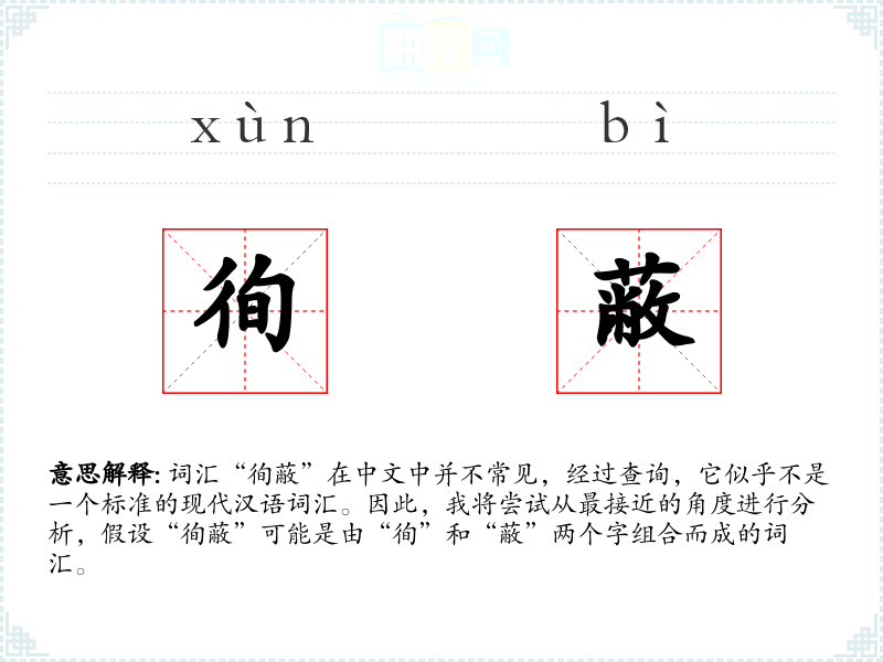 词汇“徇蔽”在中文中并不常见,经过查询,它似乎不是一个标准的现代汉语词汇。因此,我将尝试从最接近的角度进行分析,假设“徇蔽”可能是由“徇”和“蔽”两个字组合而成的词汇。