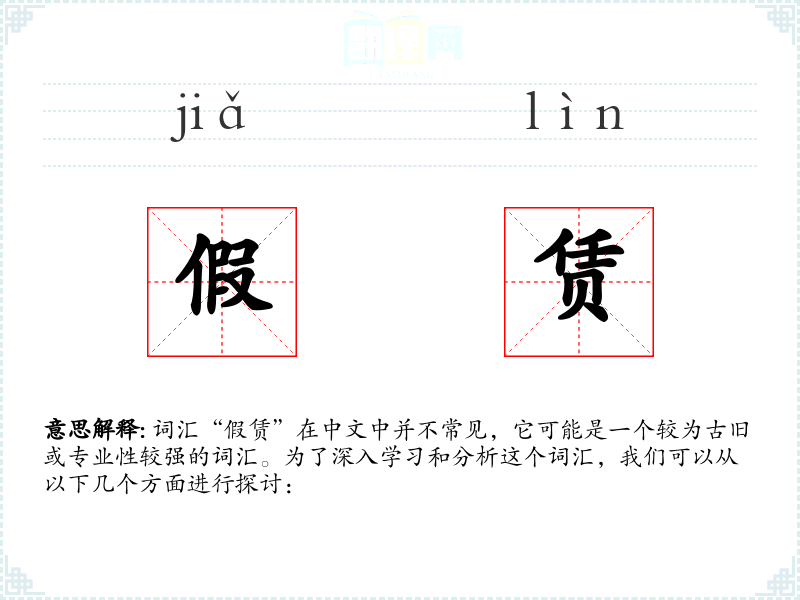 词汇“假赁”在中文中并不常见,它可能是一个较为古旧或专业性较强的词汇。为了深入学习和分析这个词汇,我们可以从以下几个方面进行探讨: