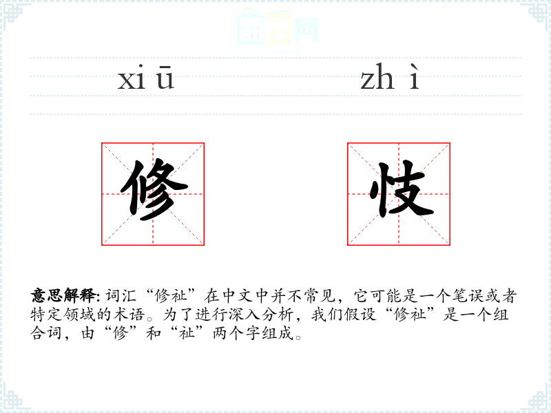 词汇“修祉”在中文中并不常见,它可能是一个笔误或者特定领域的术语。为了进行深入分析,我们假设“修祉”是一个组合词,由“修”和“祉”两个字组成。