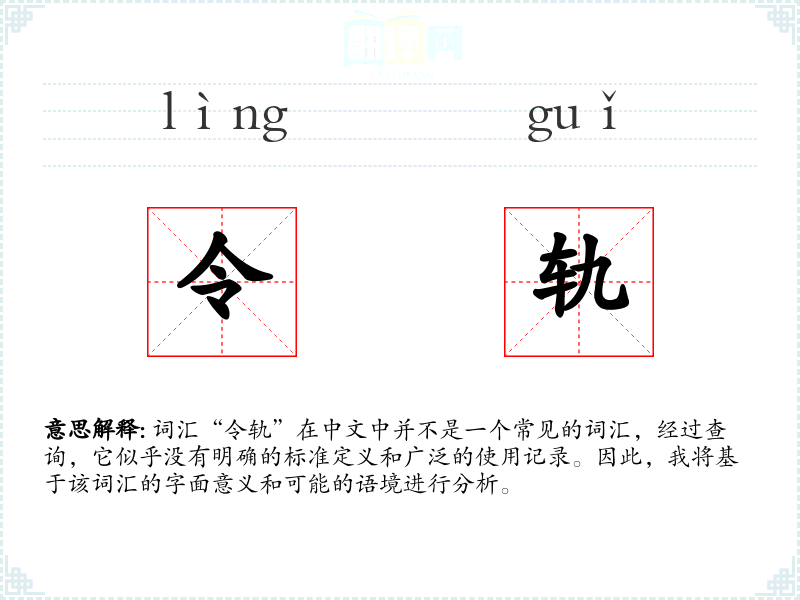 词汇“令轨”在中文中并不是一个常见的词汇,经过查询,它似乎没有明确的标准定义和广泛的使用记录。因此,我将基于该词汇的字面意义和可能的语境进行分析。