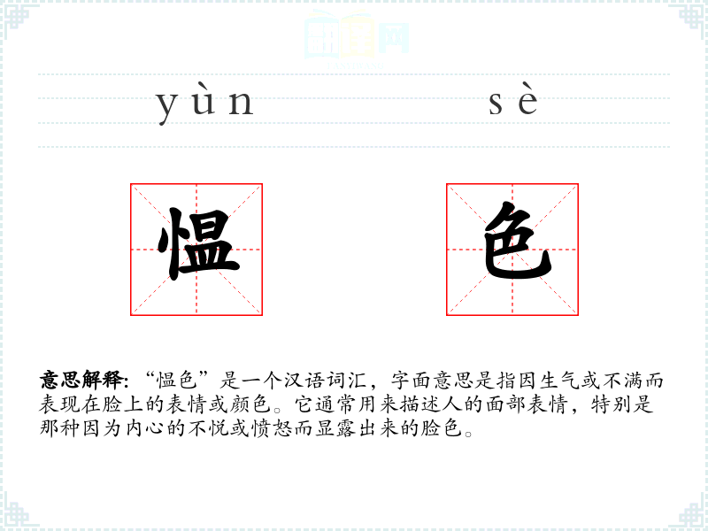 “愠色”是一个汉语词汇,字面意思是指因生气或不满而表现在脸上的表情或颜色。它通常用来描述人的面部表情,特别是那种因为内心的不悦或愤怒而显露出来的脸色。