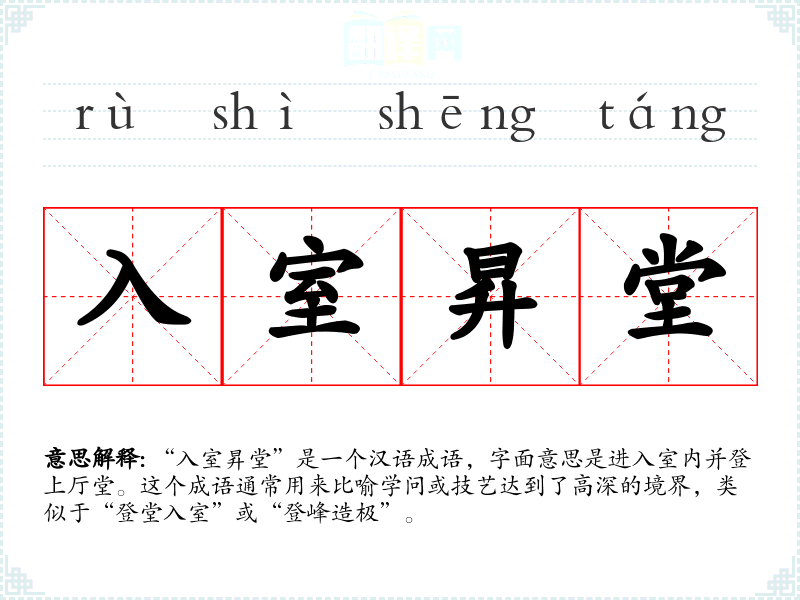 “入室昇堂”源自古代**,当时的房屋结构中,进入室内并登上厅堂是一个重要的礼仪行为,象征着地位的提升。随着时间的推移,这个成语被用来比喻学问或技艺的提升。