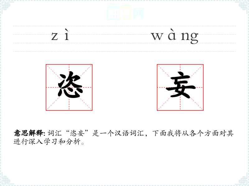 “恣”字古已有之,意为放纵、任意;“妄”字意为虚妄、不实。两者结合,形成了“恣妄”这一词汇,用来形容行为或言语的过度放纵。