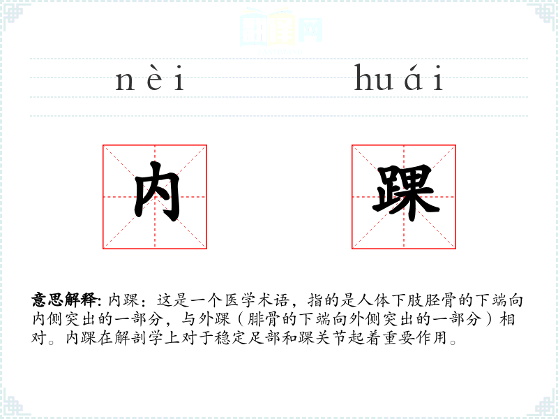 - 反义词:外踝(腓骨的下端向外侧突出的一部分)