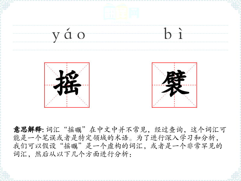词汇“摇曞”在中文中并不常见,经过查询,这个词汇可能是一个笔误或者是特定领域的术语。为了进行深入学习和分析,我们可以假设“摇曞”是一个虚构的词汇,或者是一个非常罕见的词汇,然后从以下几个方面进行分析: